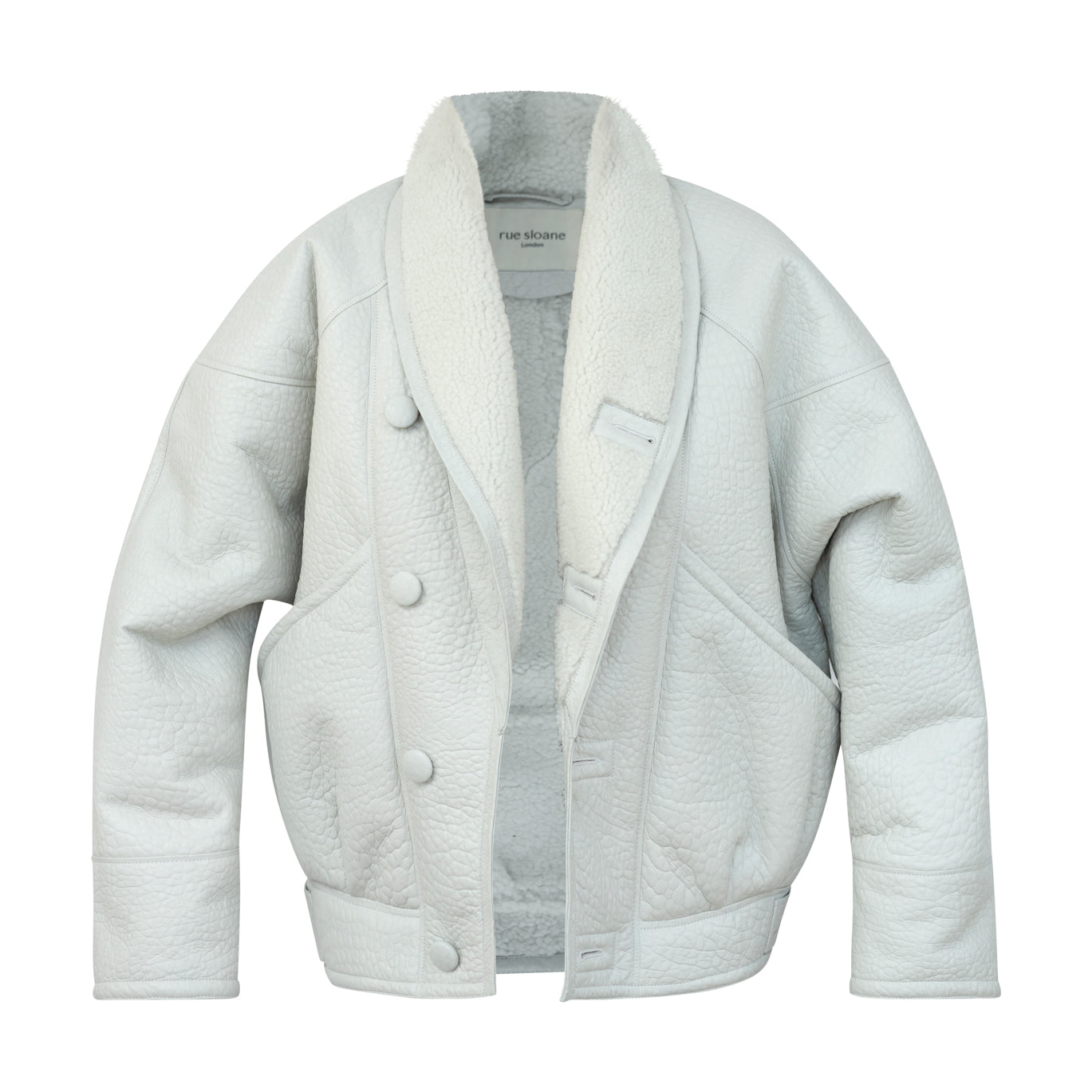TIMOTHY Shearling Leather Jacket in Cloud White