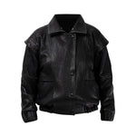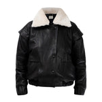 DIAMOND GIRL Leather Bomber in Noir
