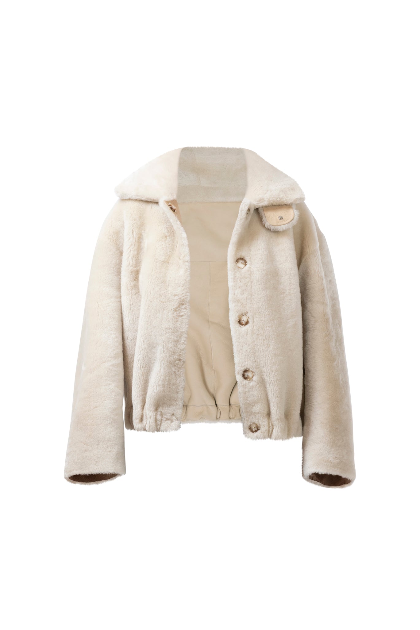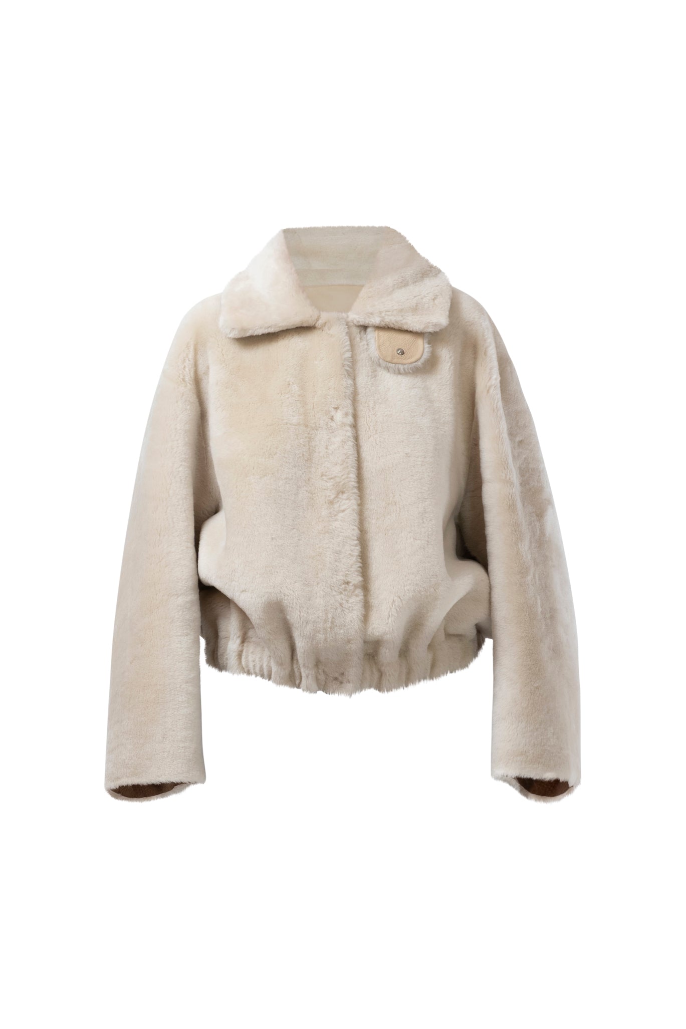 MAYFAIR Shearling Reversible Bomber in Snow Bear