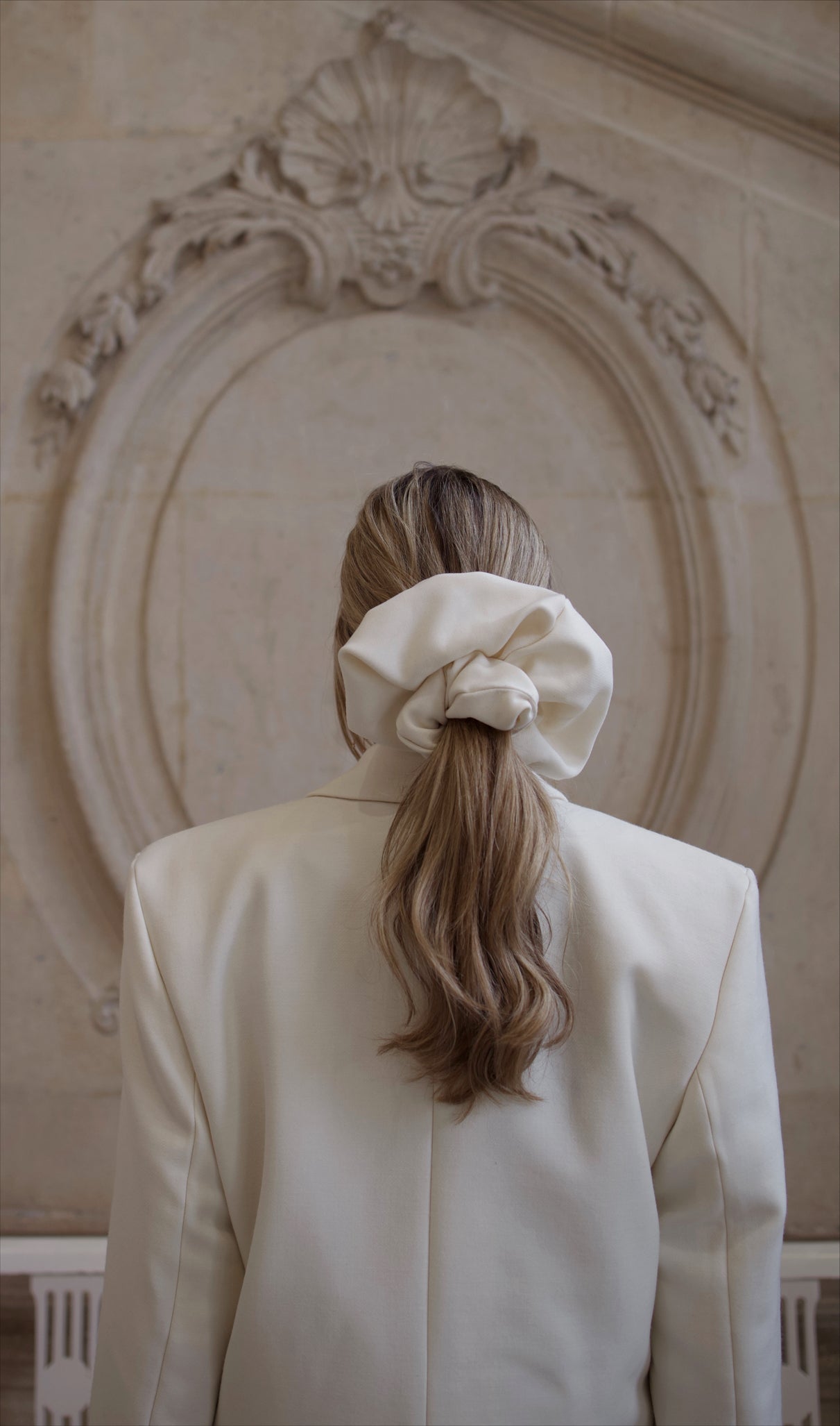 Our oversized scrunchies made from Australian wool spun and dyed in Italy. Deliberately oversized for a statement look. Available in English Cream, Onyx Black and Italian Grey.