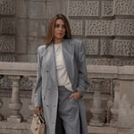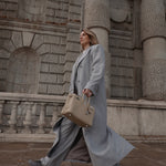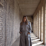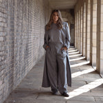 Designed to be worn three ways: as a blazer, a coat or belted as a dress, the fabric is beautifully fluid whilst still being heavyweight and the boxy shoulders are ideal for layering.