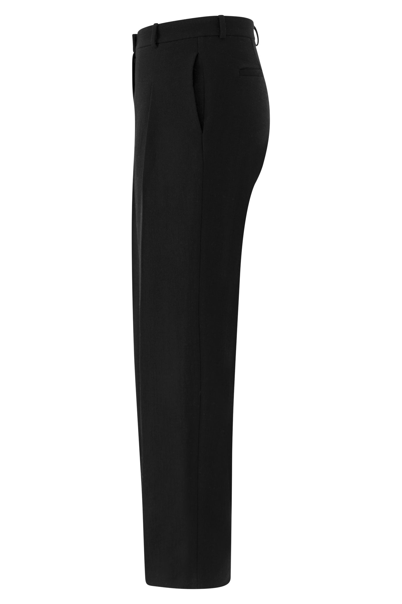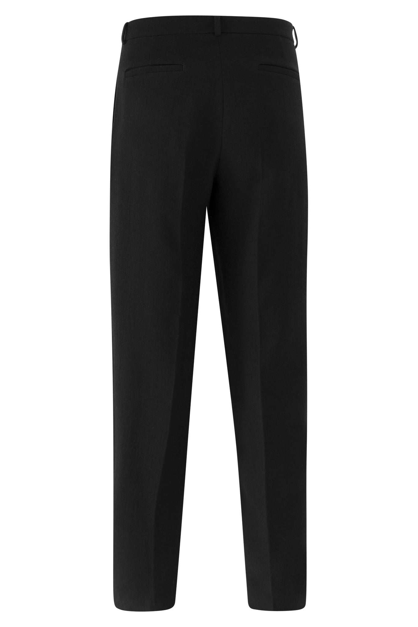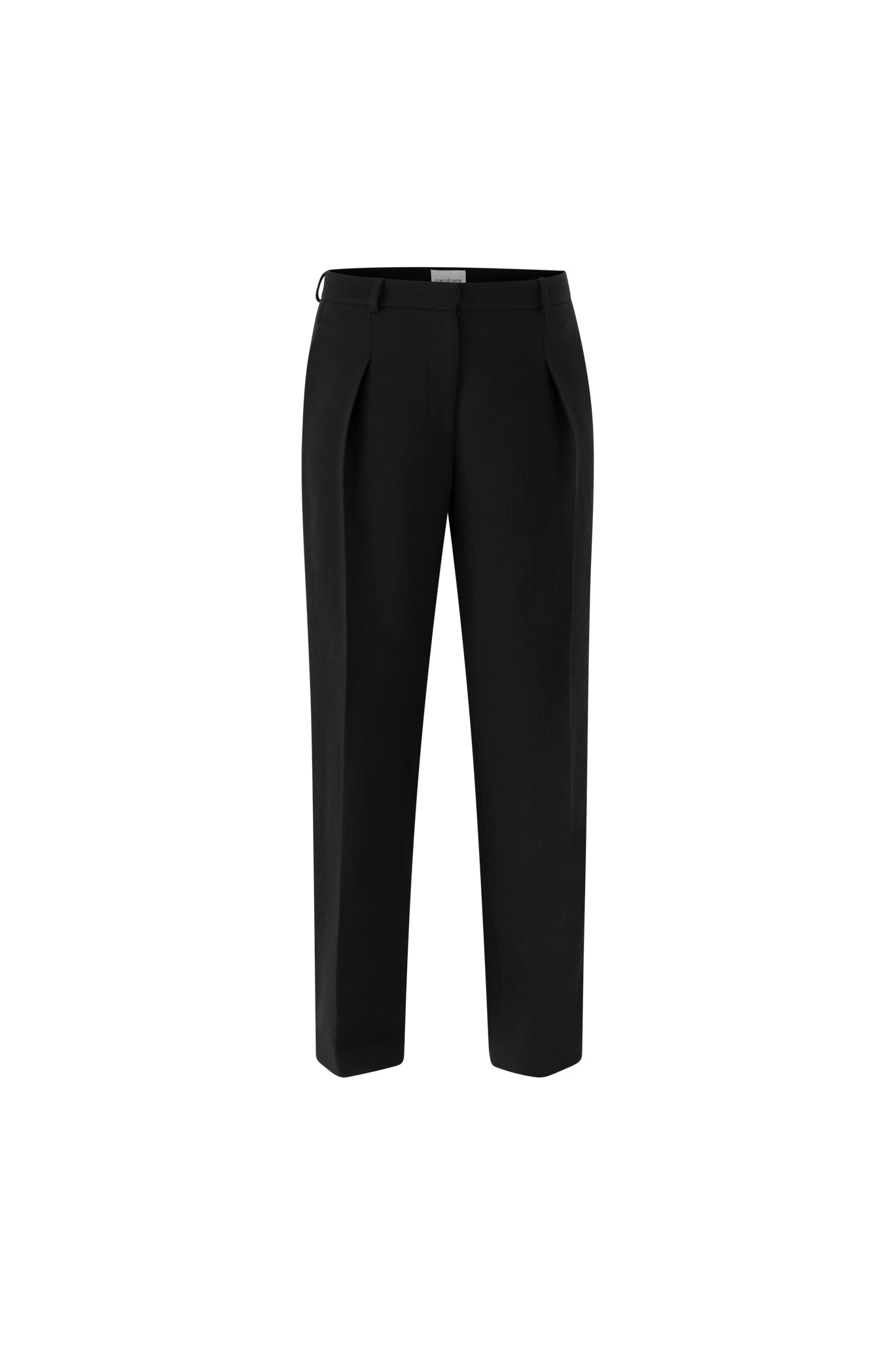 Slightly high waisted with a slight wide leg. Can be worn fitted or oversized if you go up a size, with heels or flats.