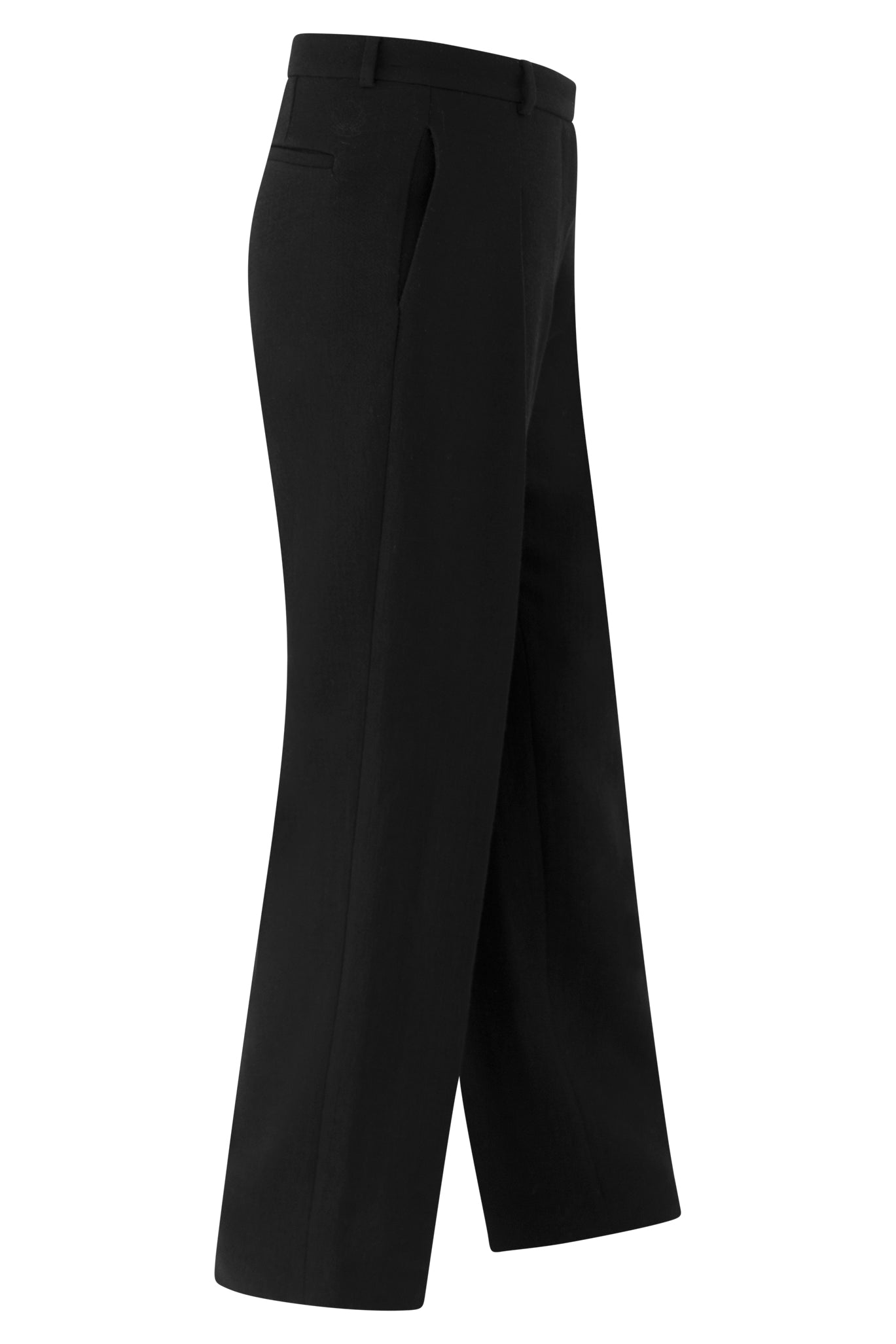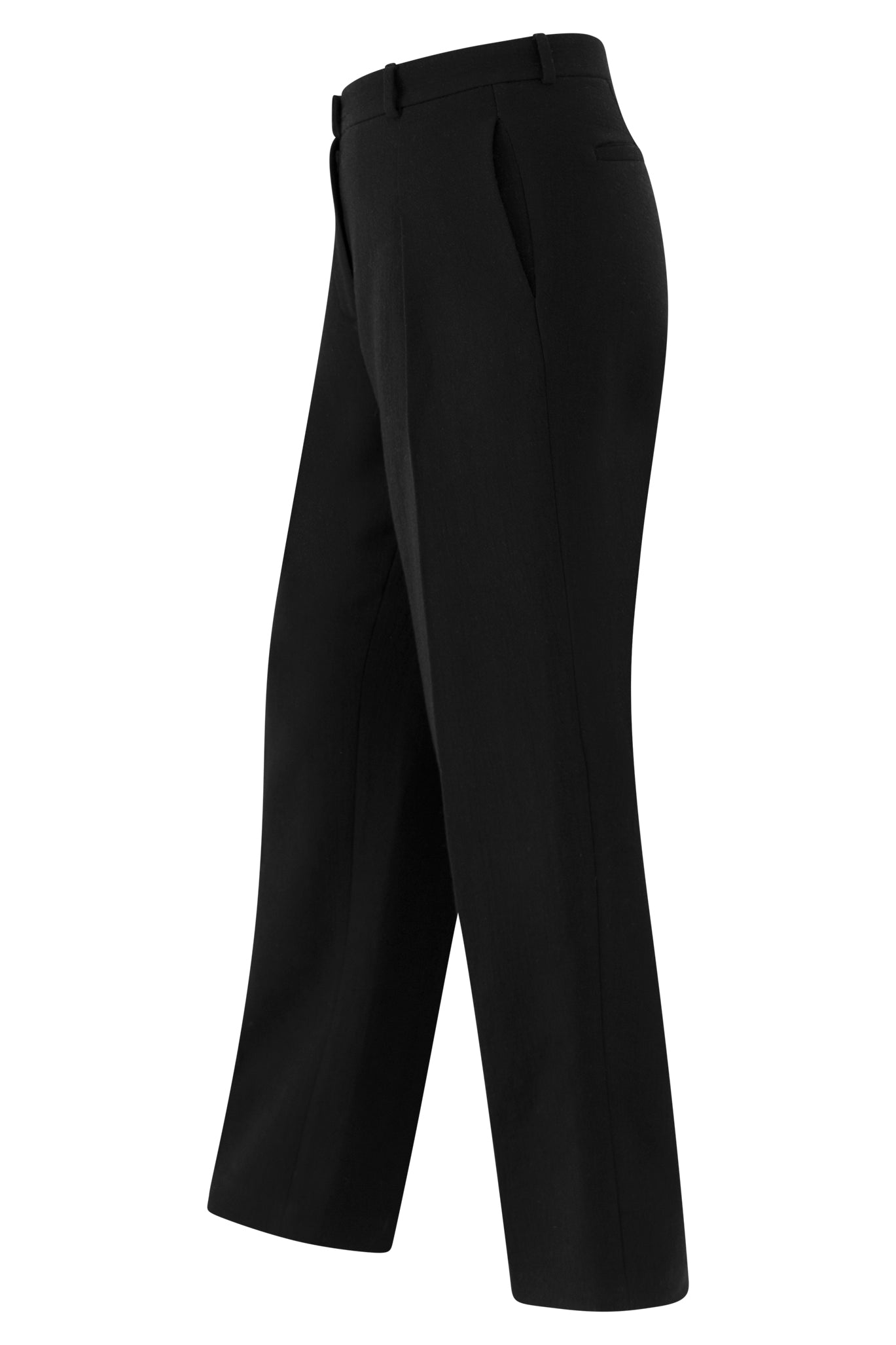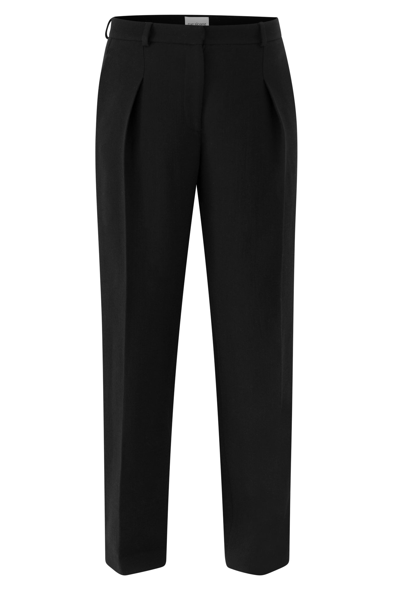 Slightly high waisted with a slight wide leg. Can be worn fitted or oversized if you go up a size, with heels or flats.