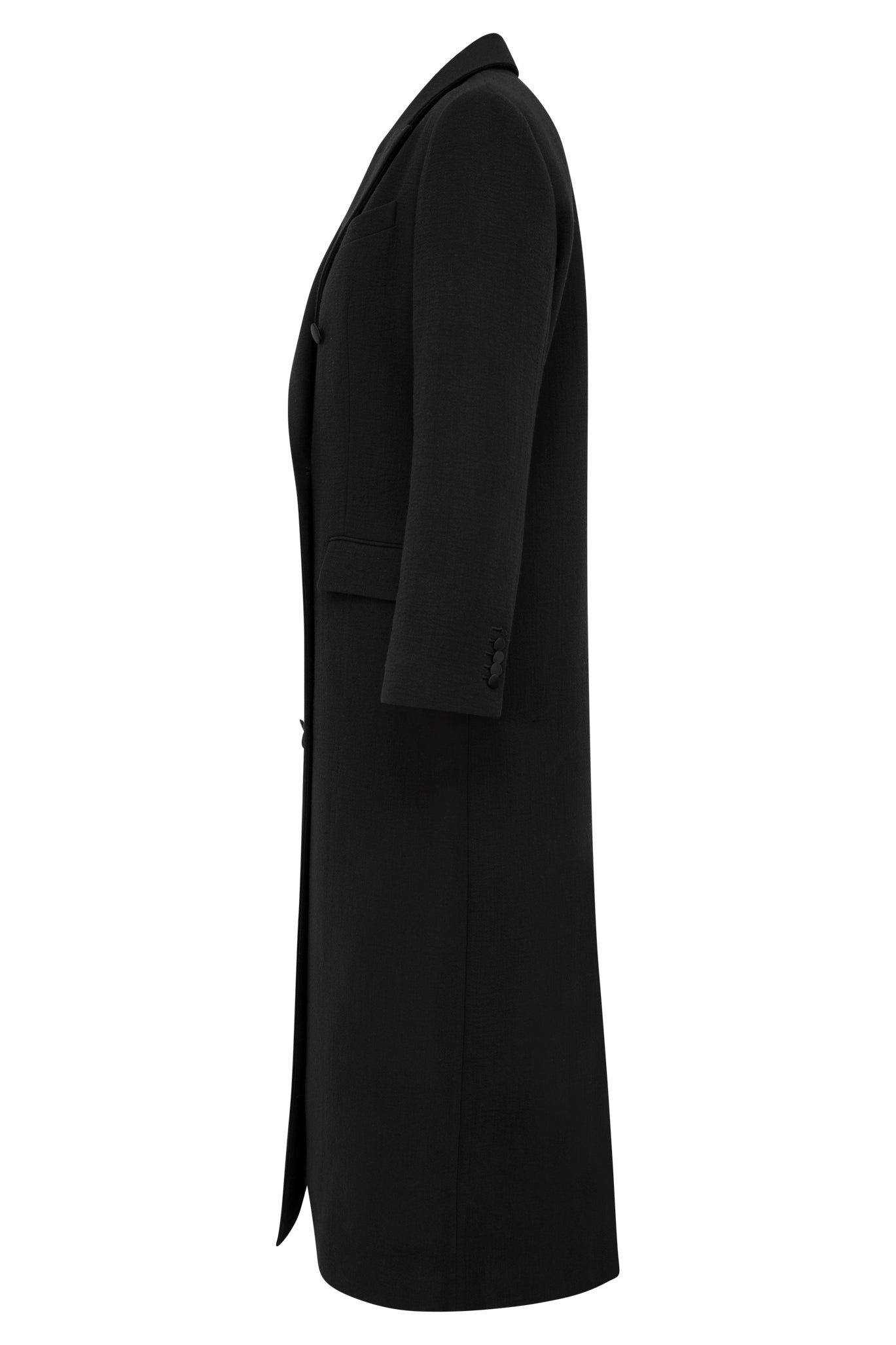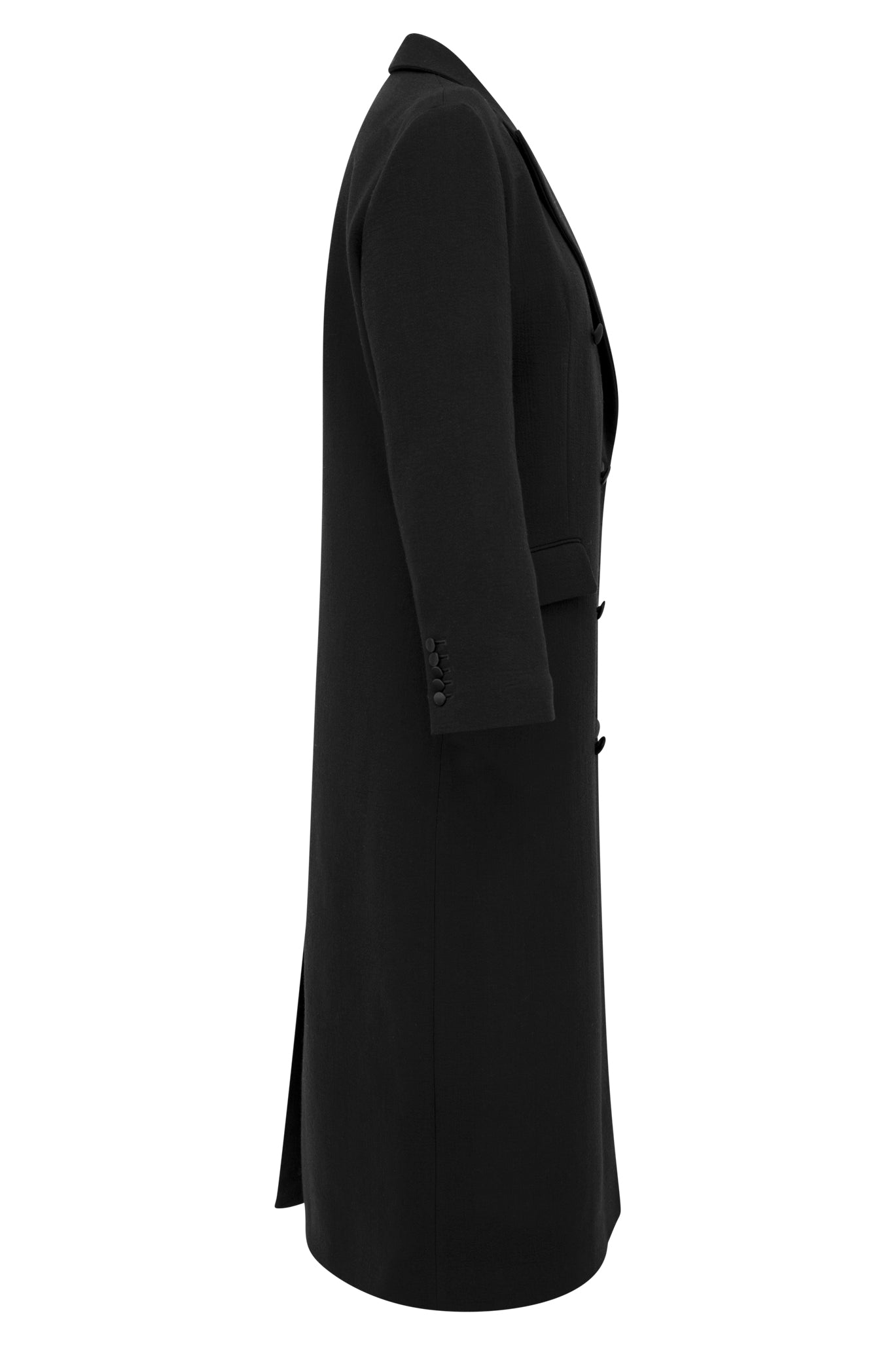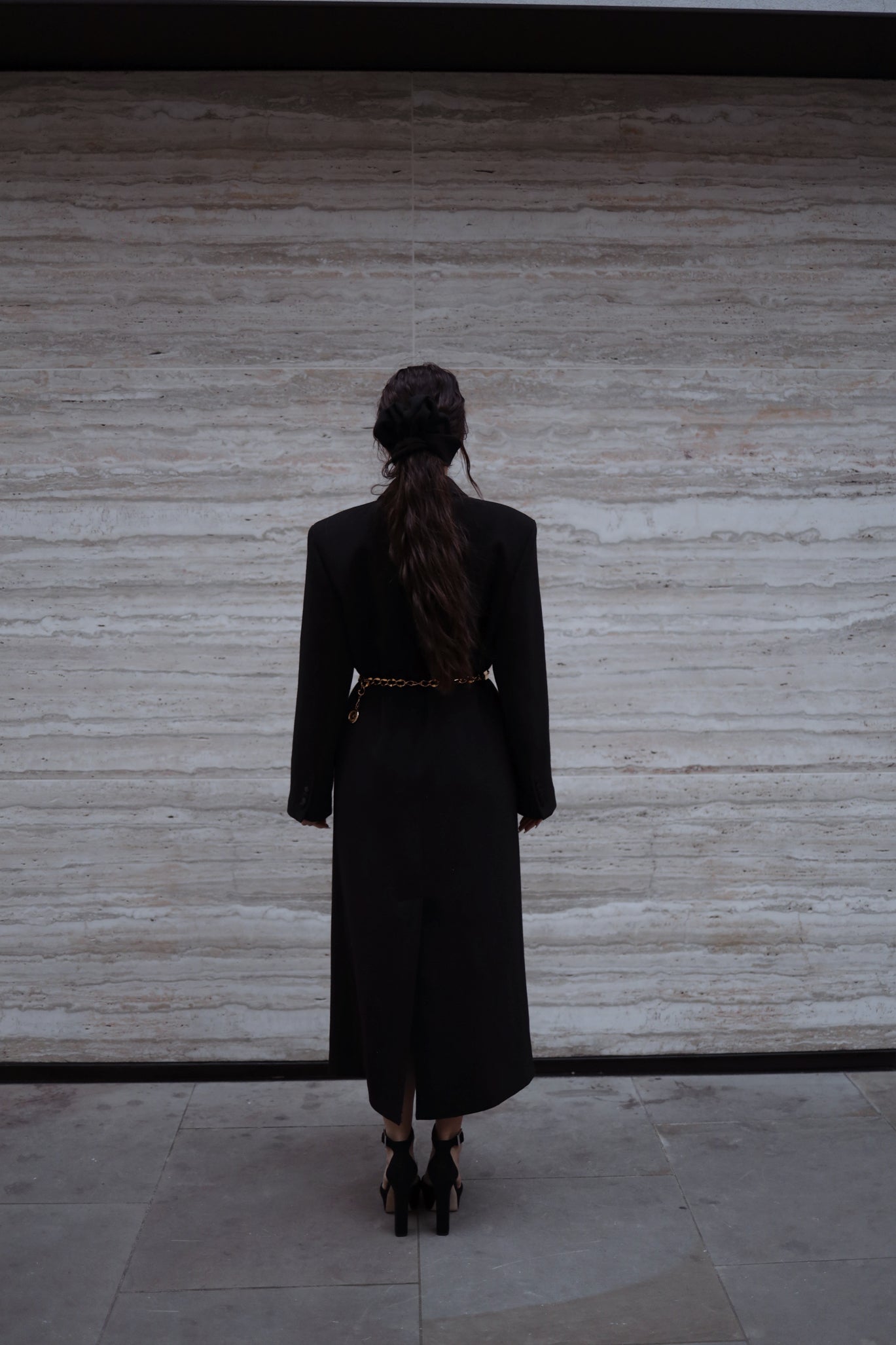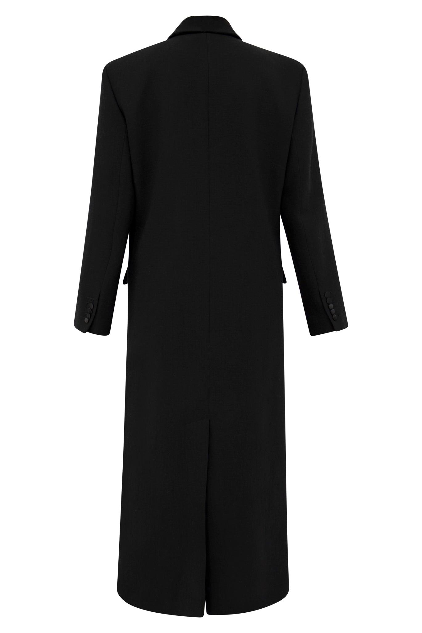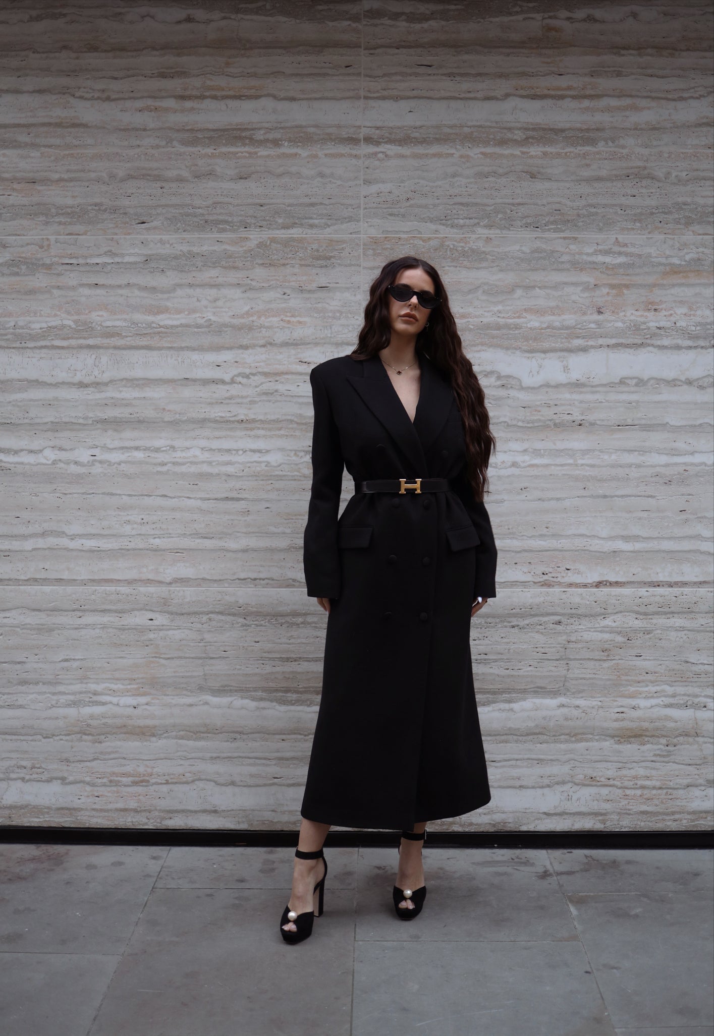 Designed to be worn three ways: as a blazer, a coat or belted as a dress, the fabric is beautifully fluid whilst still being heavyweight and the boxy shoulders are ideal for layering.
