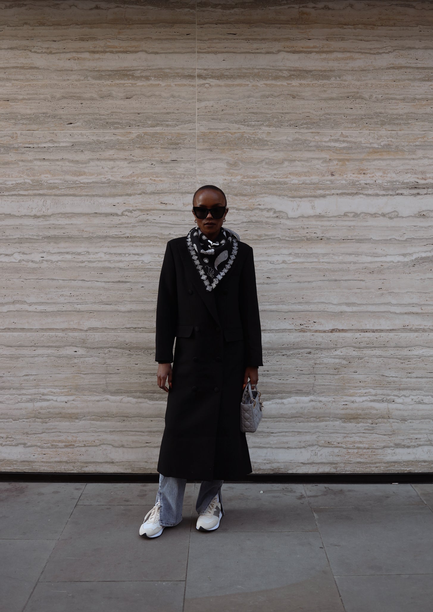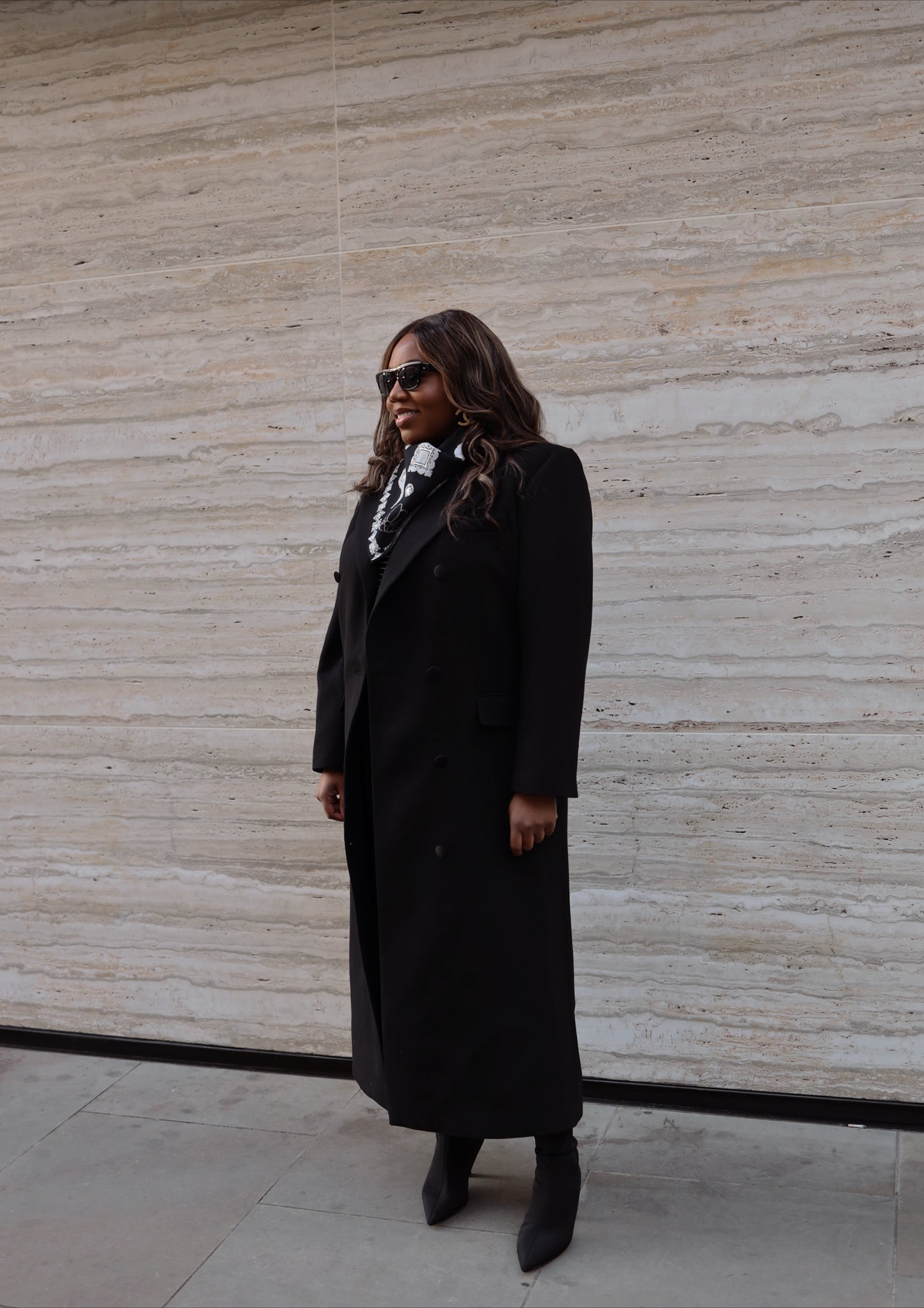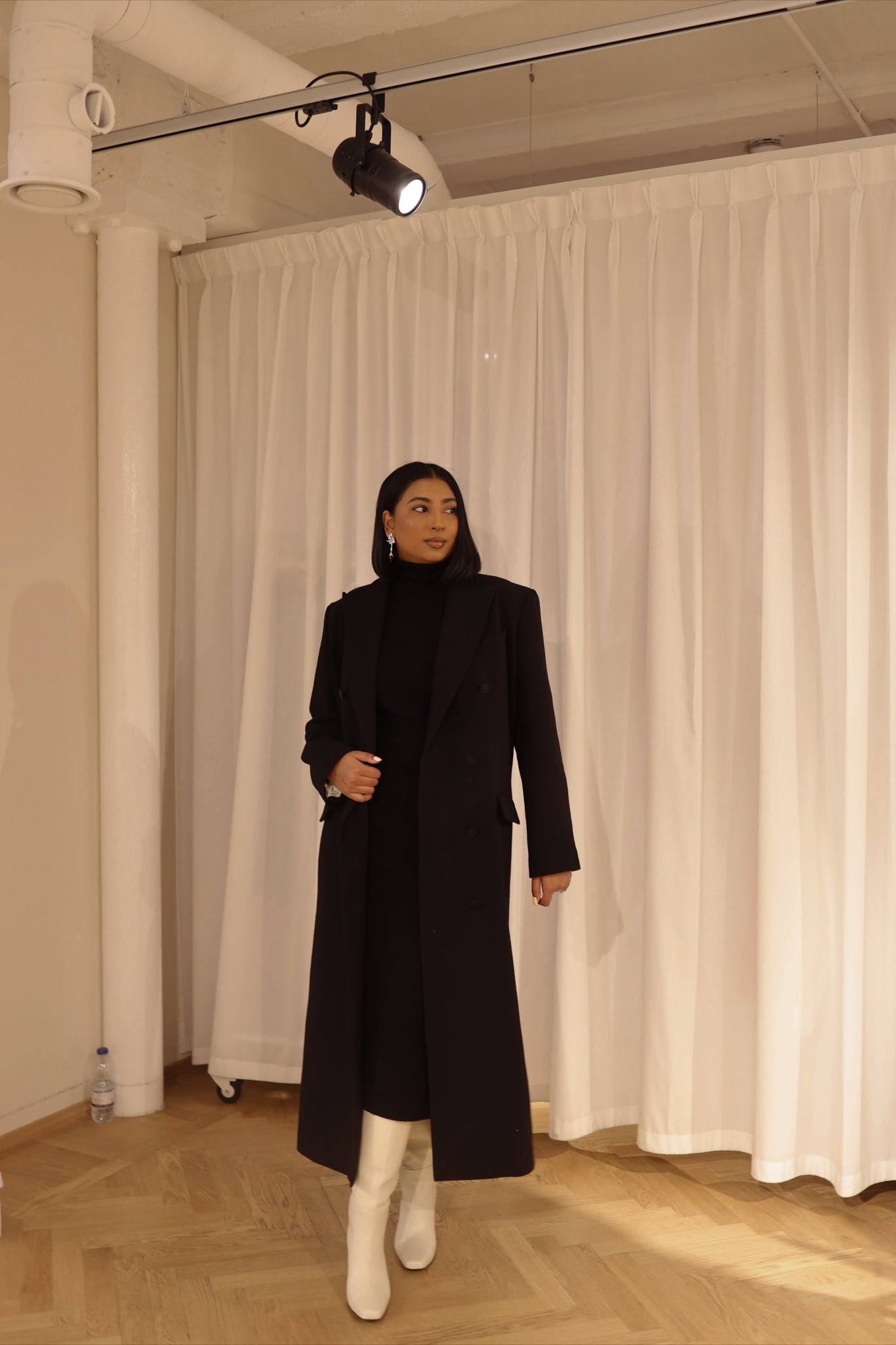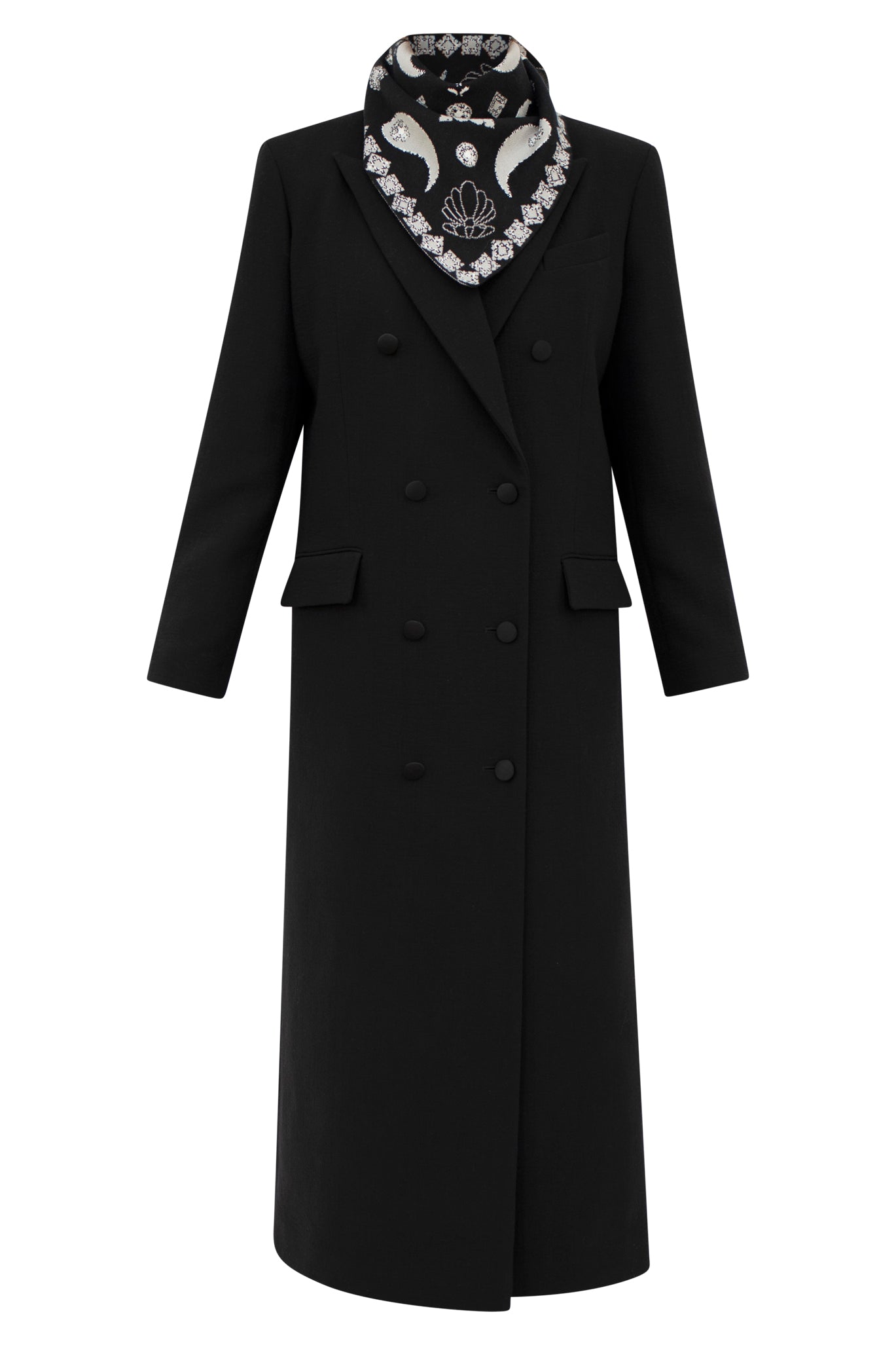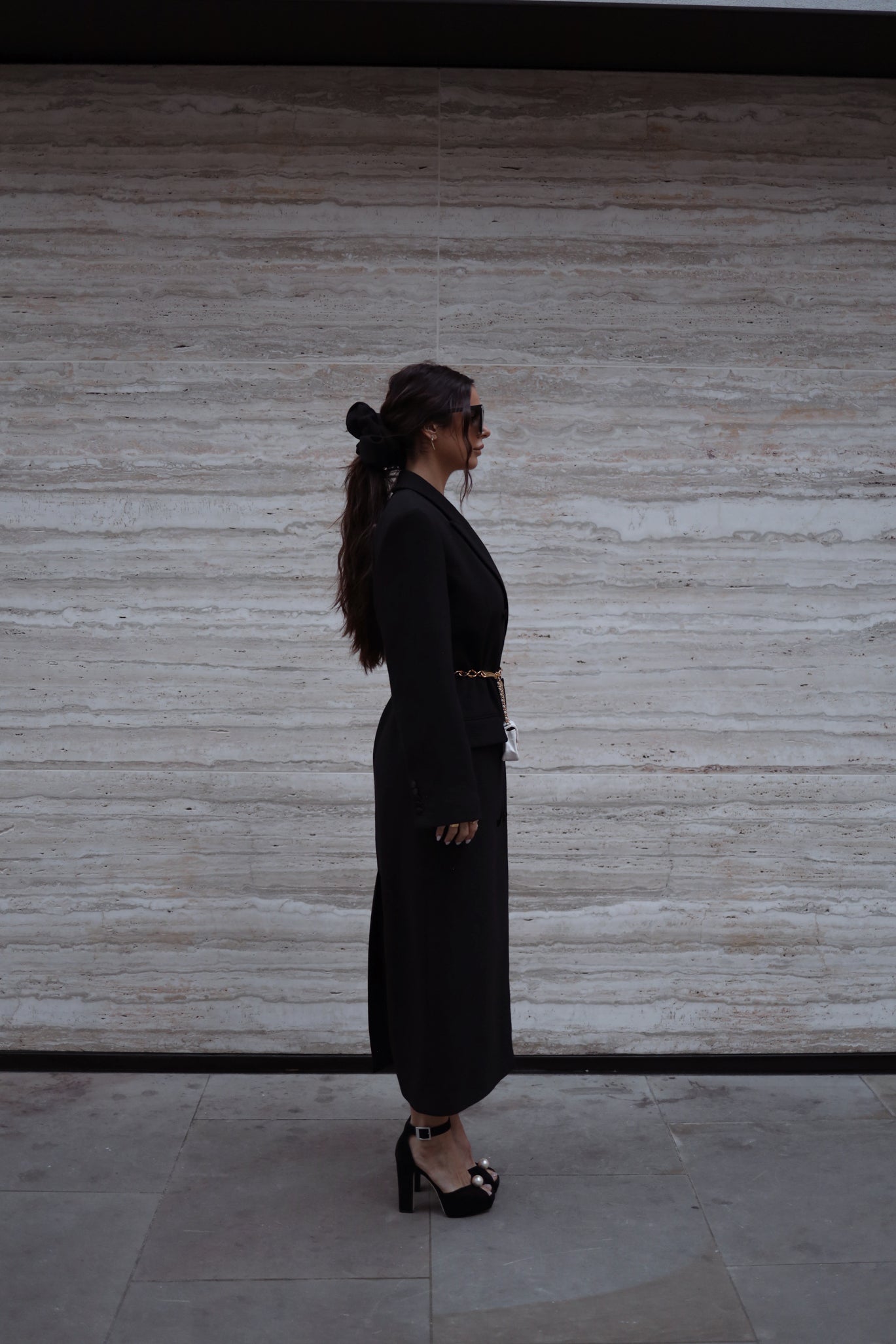 Designed to be worn three ways: as a blazer, a coat or belted as a dress, the fabric is beautifully fluid whilst still being heavyweight and the boxy shoulders are ideal for layering.
