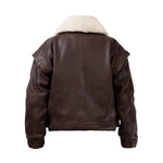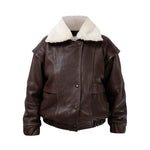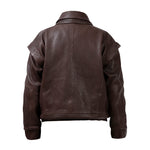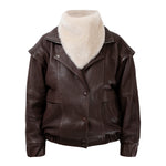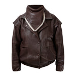 DIAMOND GIRL Leather Bomber in Espresso Brown