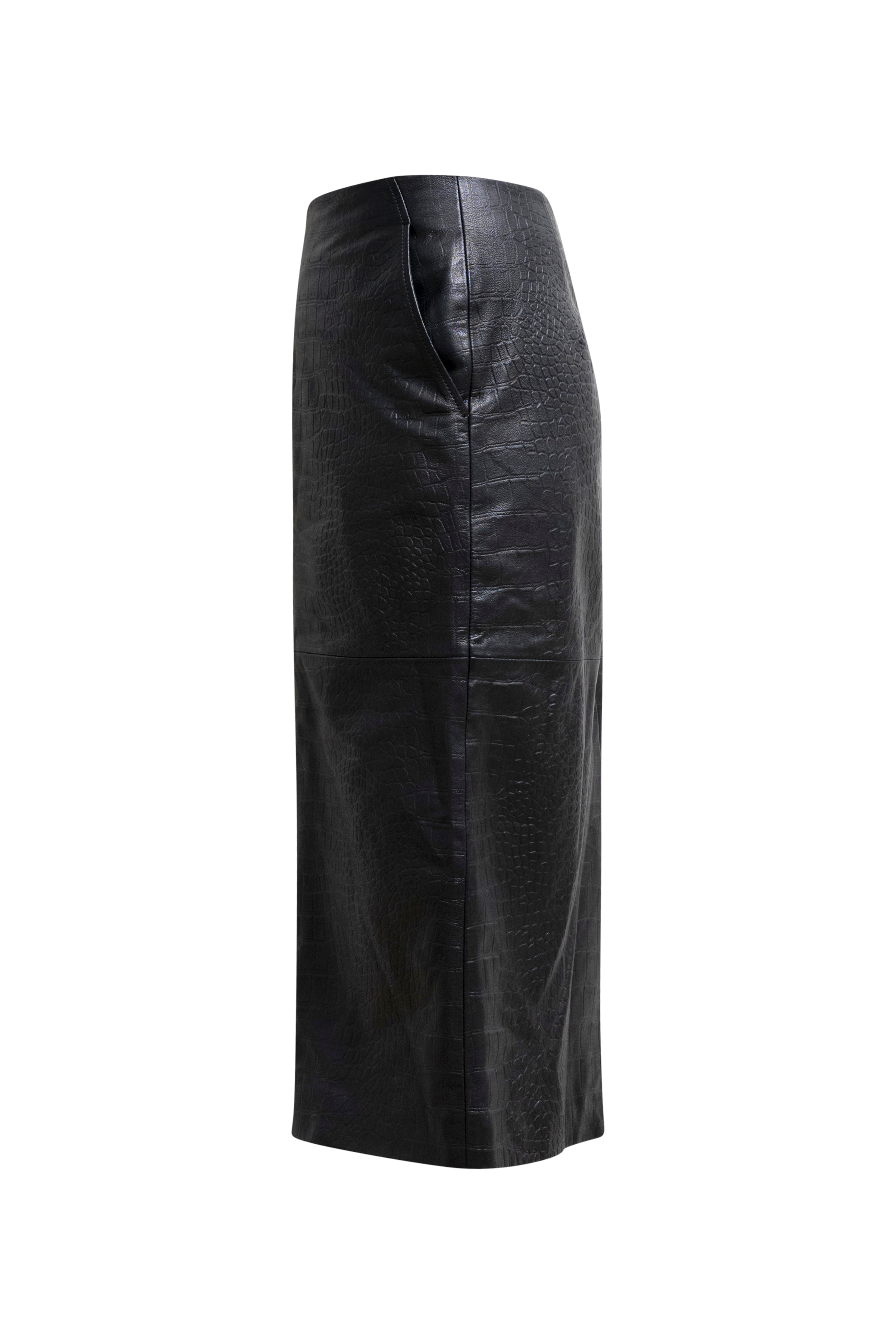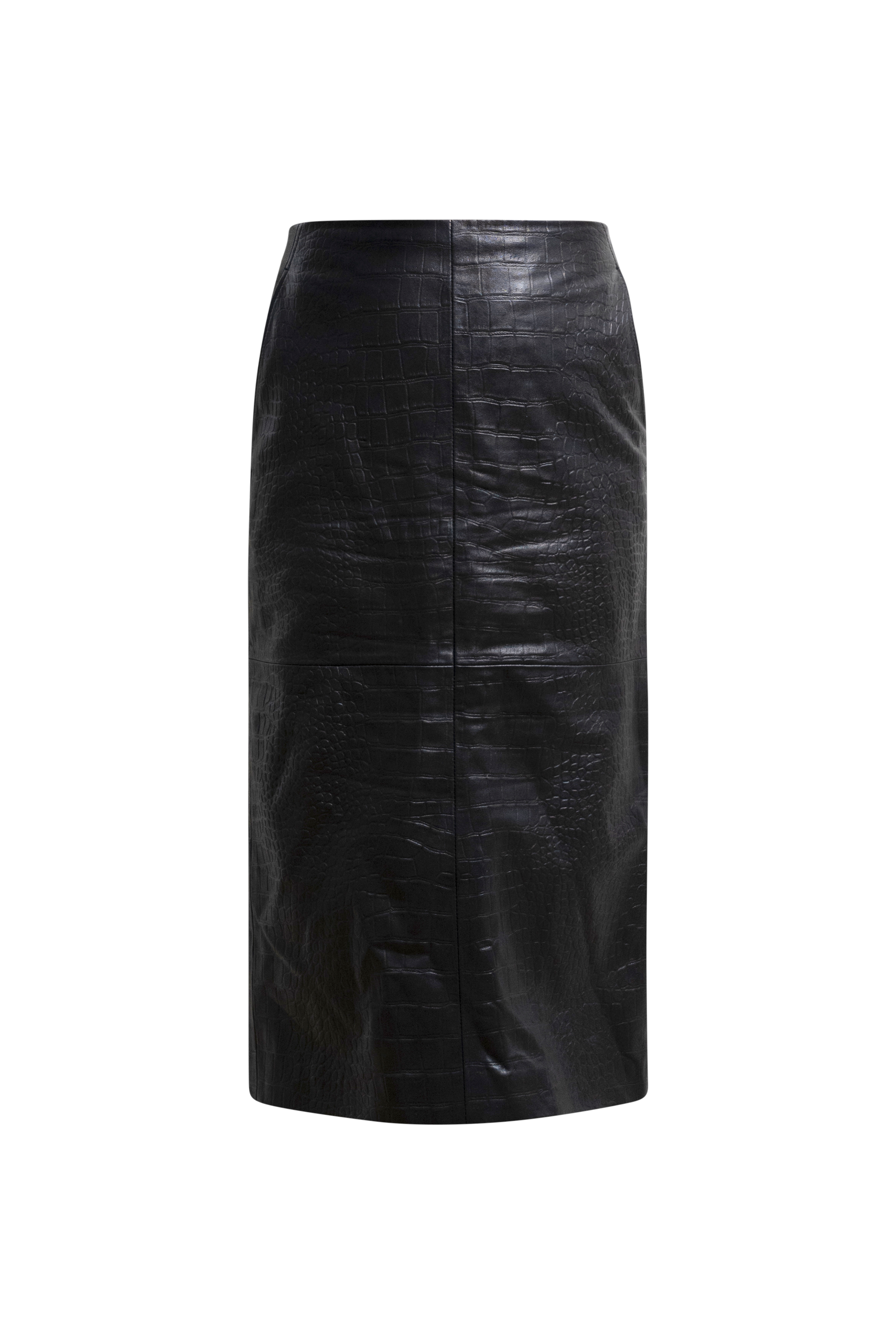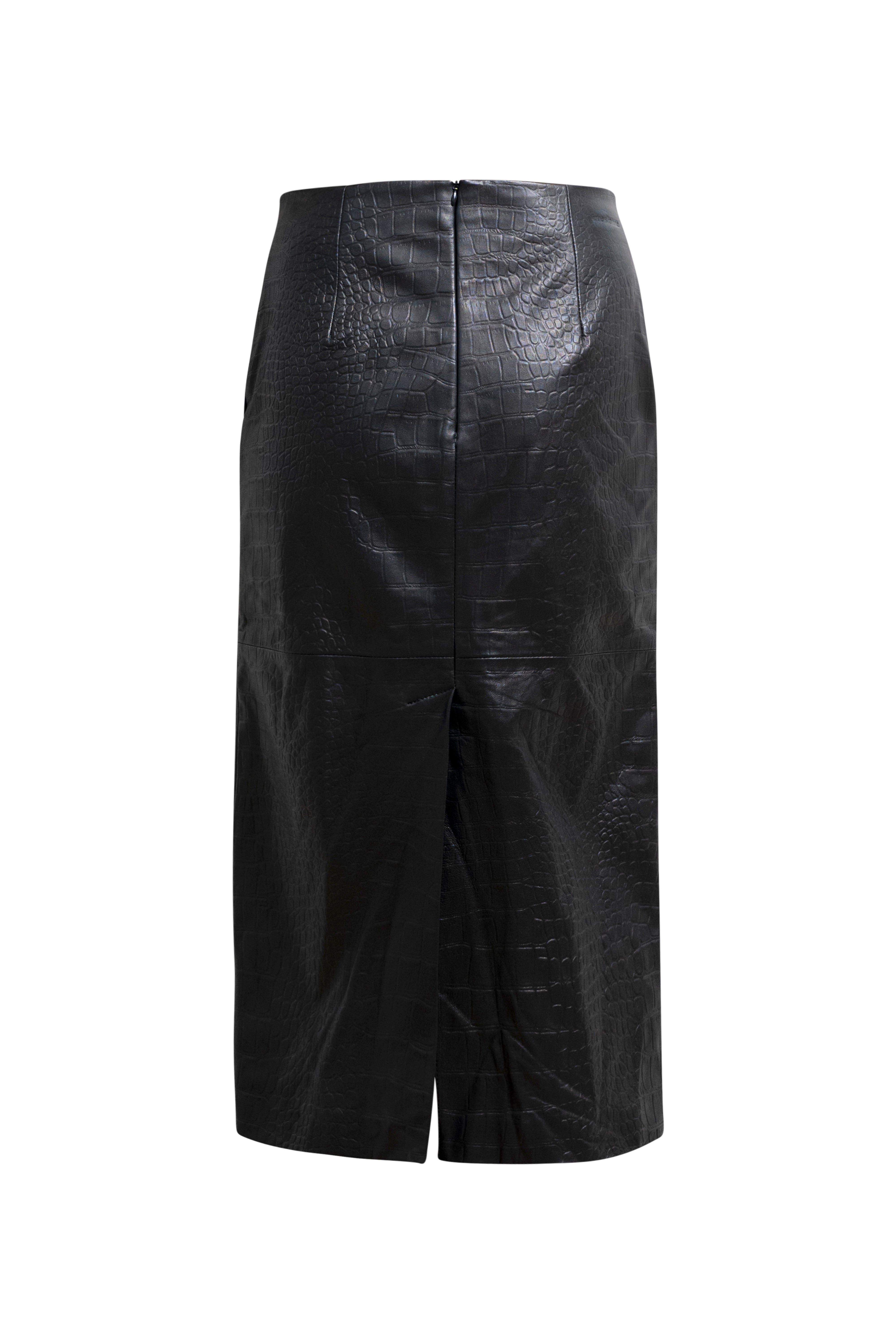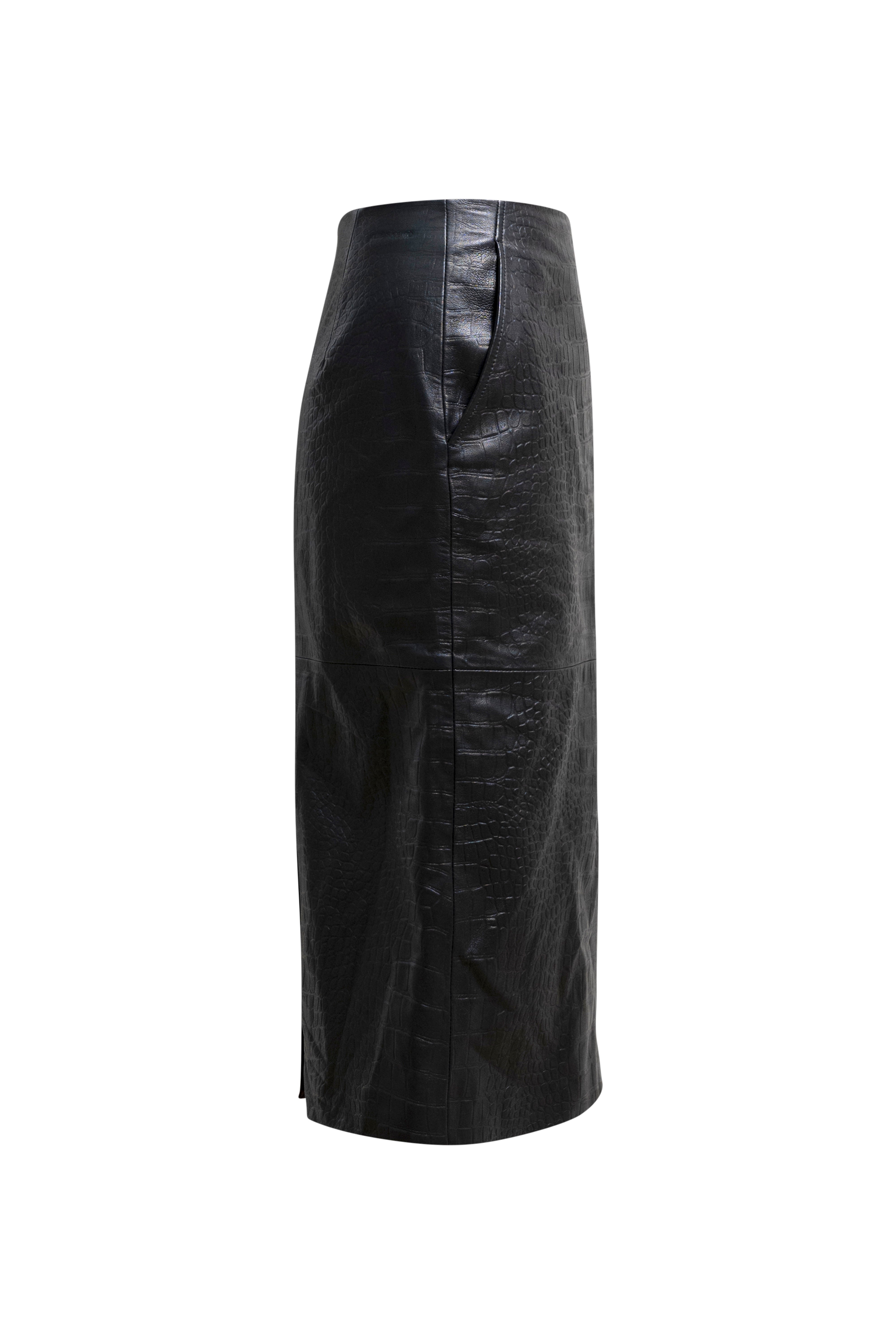 A sophisticated extension of our Simply Perfect Mini Skirt. Made from British premium grade leather. A pencil silhouette, midi length, minimal style side pockets with back slit and zip fastening. Designed to sit comfortably on your mid waist line.