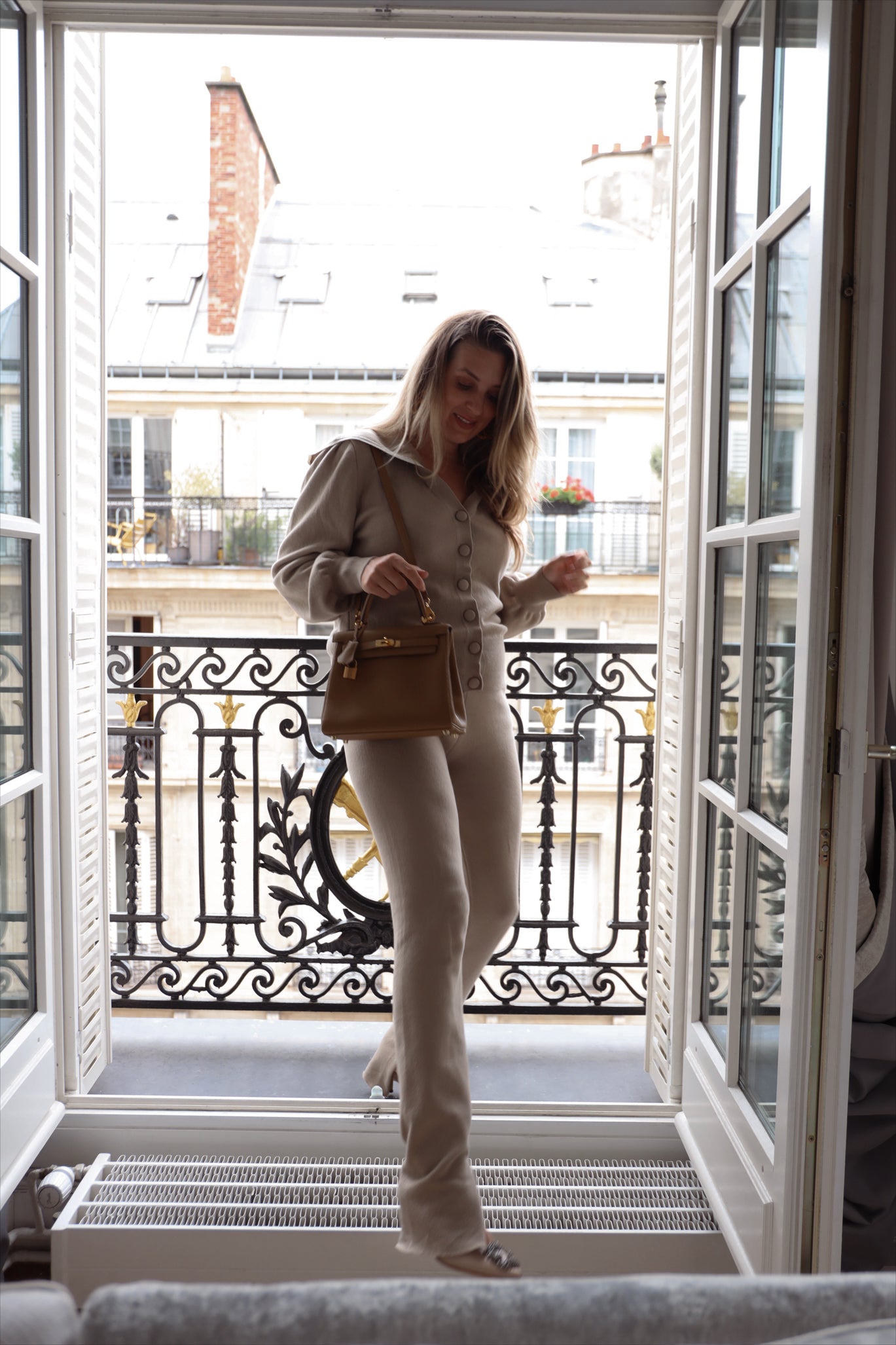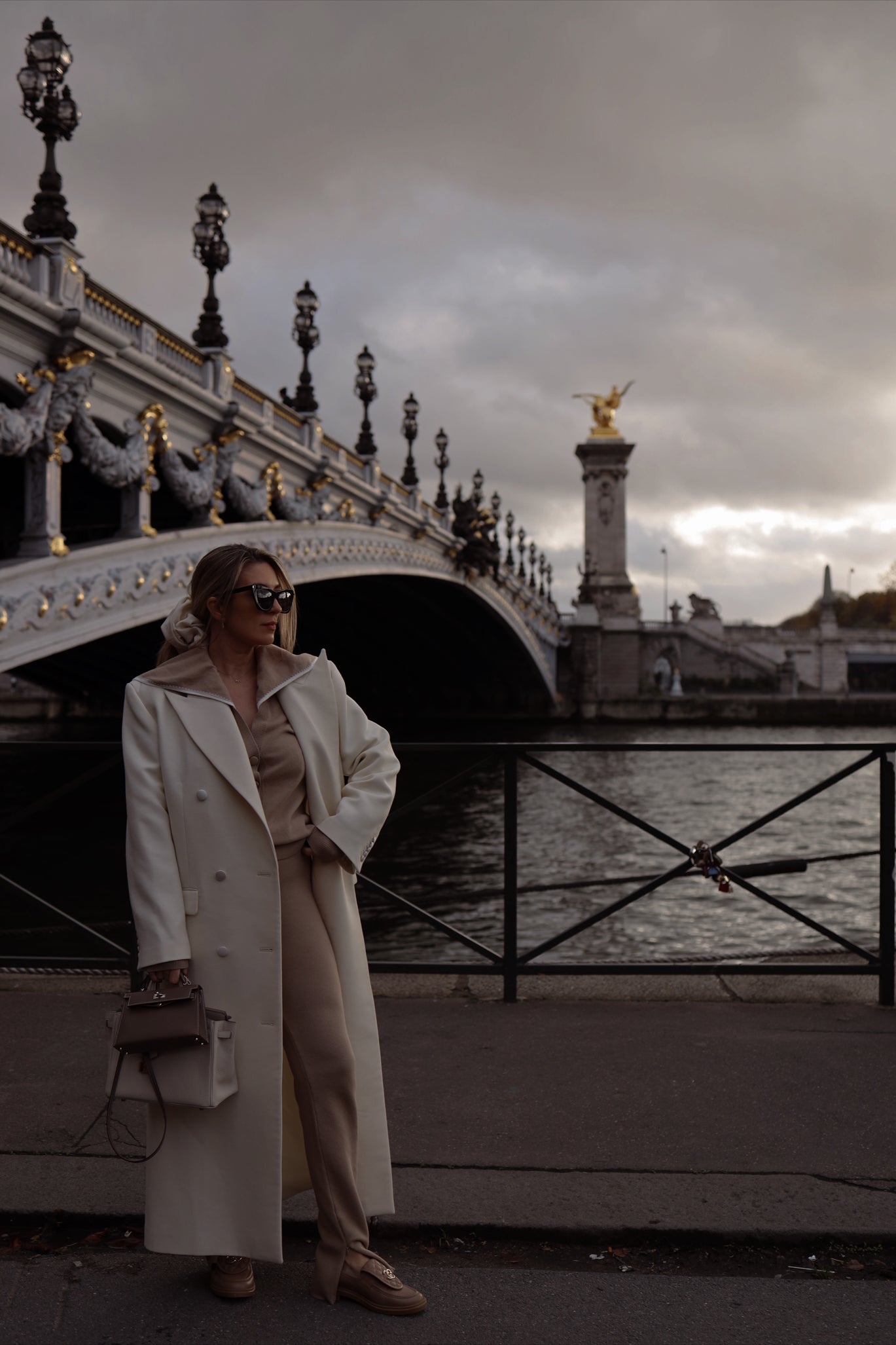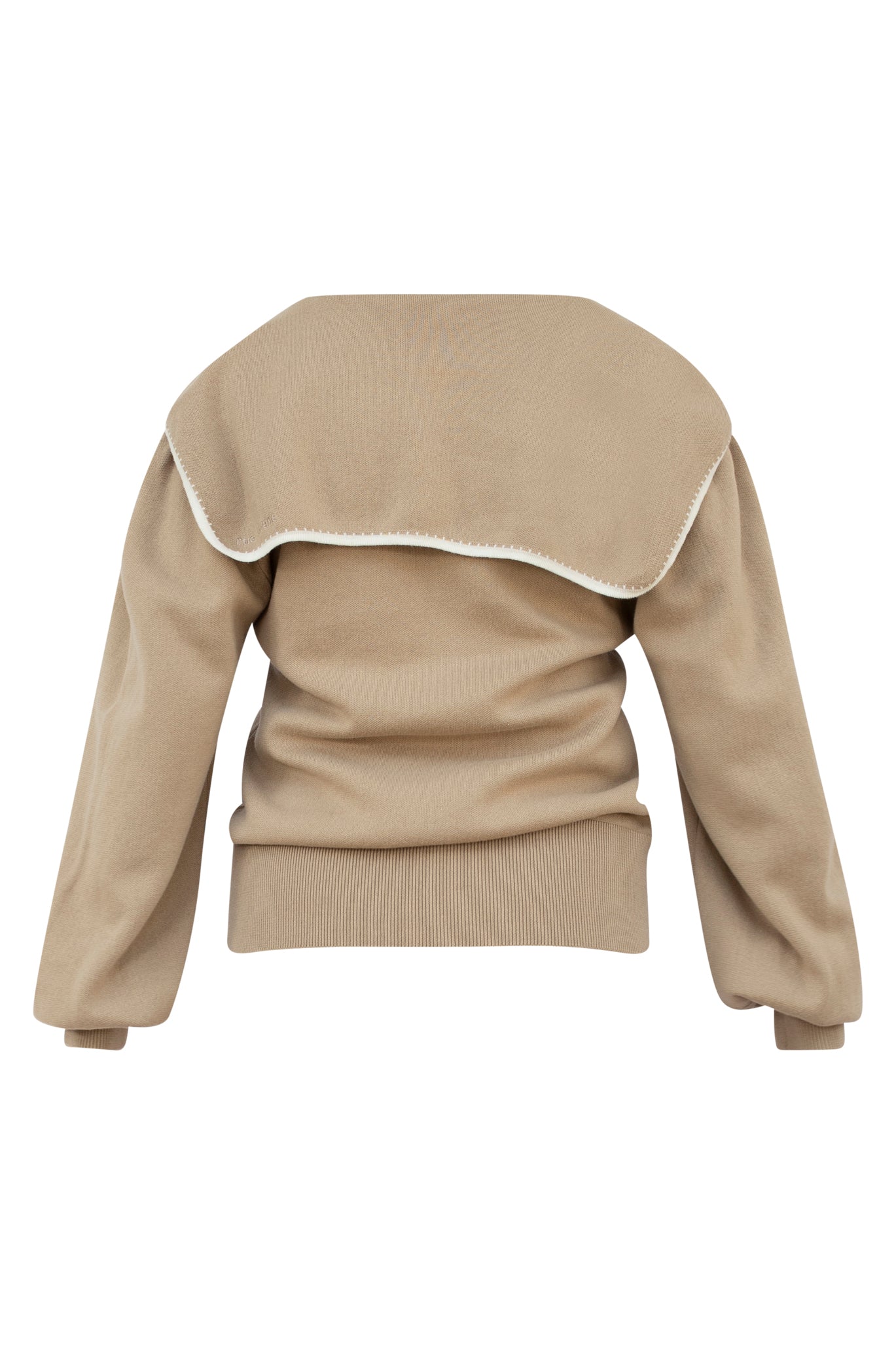 Our sailor-inspired cardigan come in biscuit beige, made from Egyptian cotton cashmere mix. Available as a set with the St Tropez Trousers.