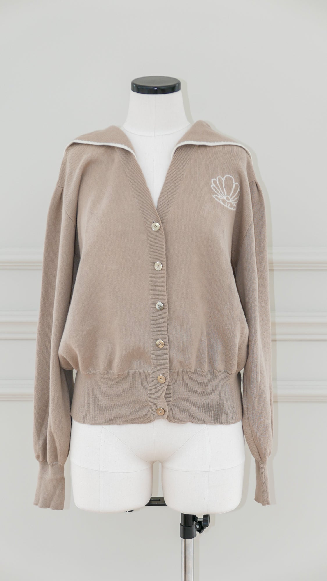 Our sailor-inspired cardigan come in biscuit beige, made from Egyptian cotton cashmere mix. Available as a set with the St Tropez Trousers.
