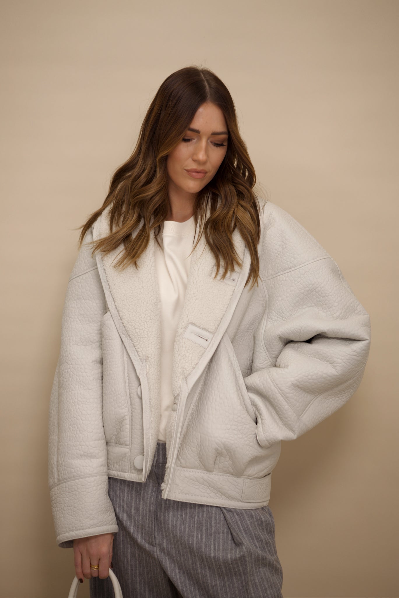 TIMOTHY Shearling Leather Jacket in Cloud White